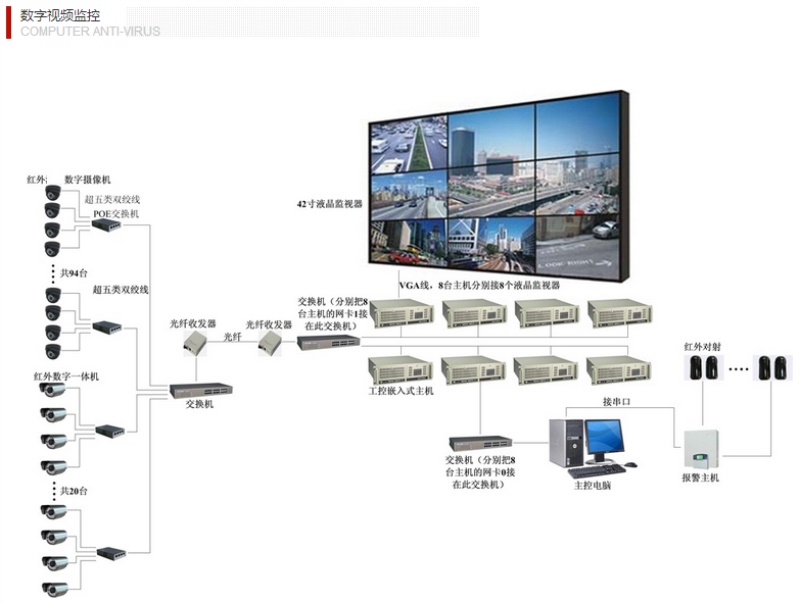 通道监控是针对办公室人员工作状态进行监控,且兼顾对所有出入通道外来人员的体貌特征记录的任务;对于办公室自身监控安防重点信息采集起着至关重要的作用。